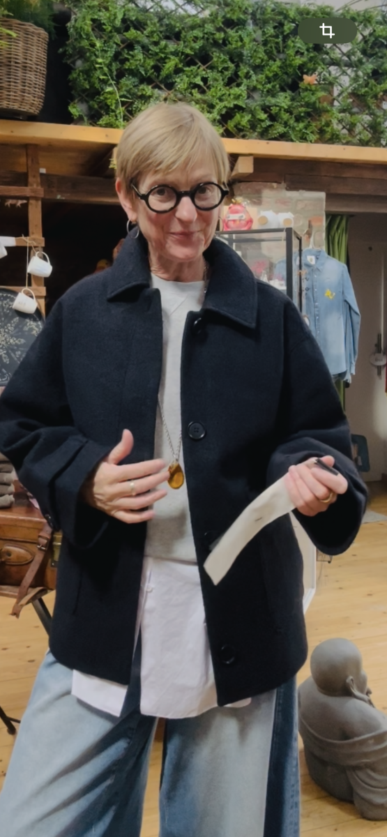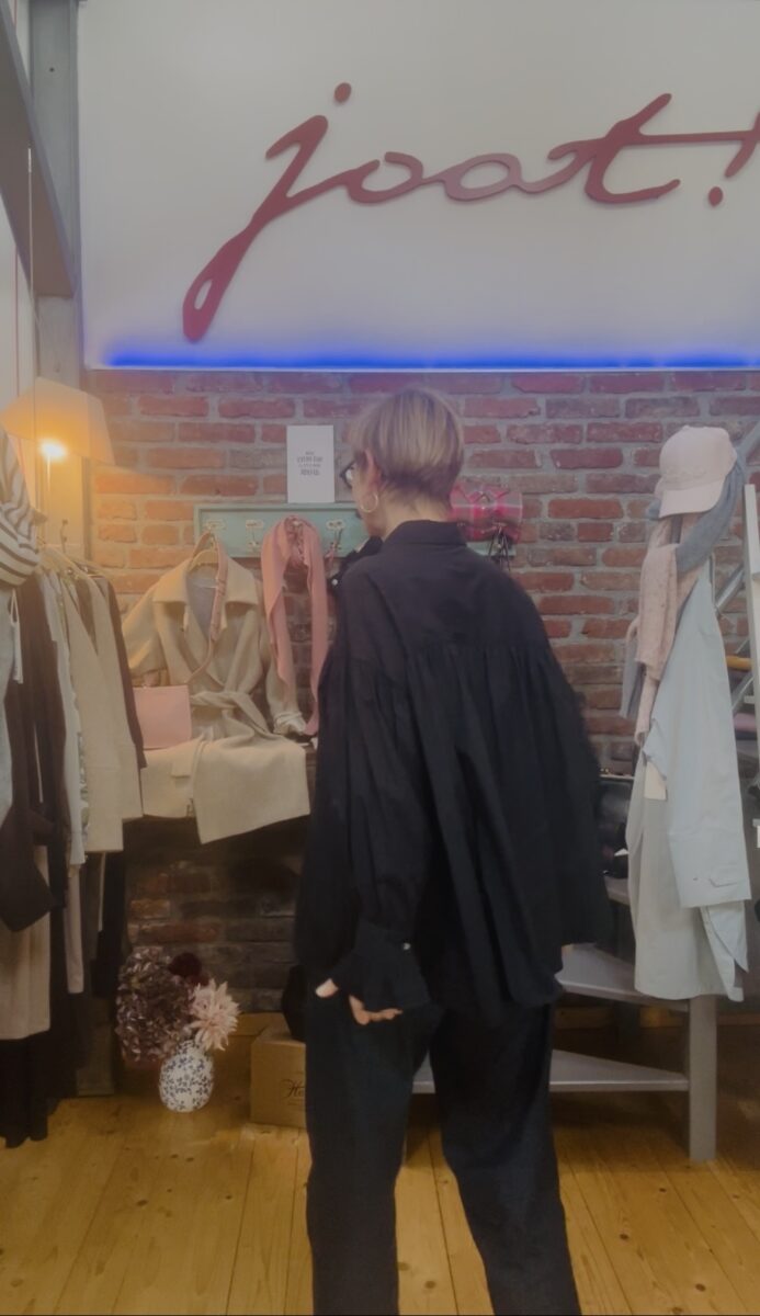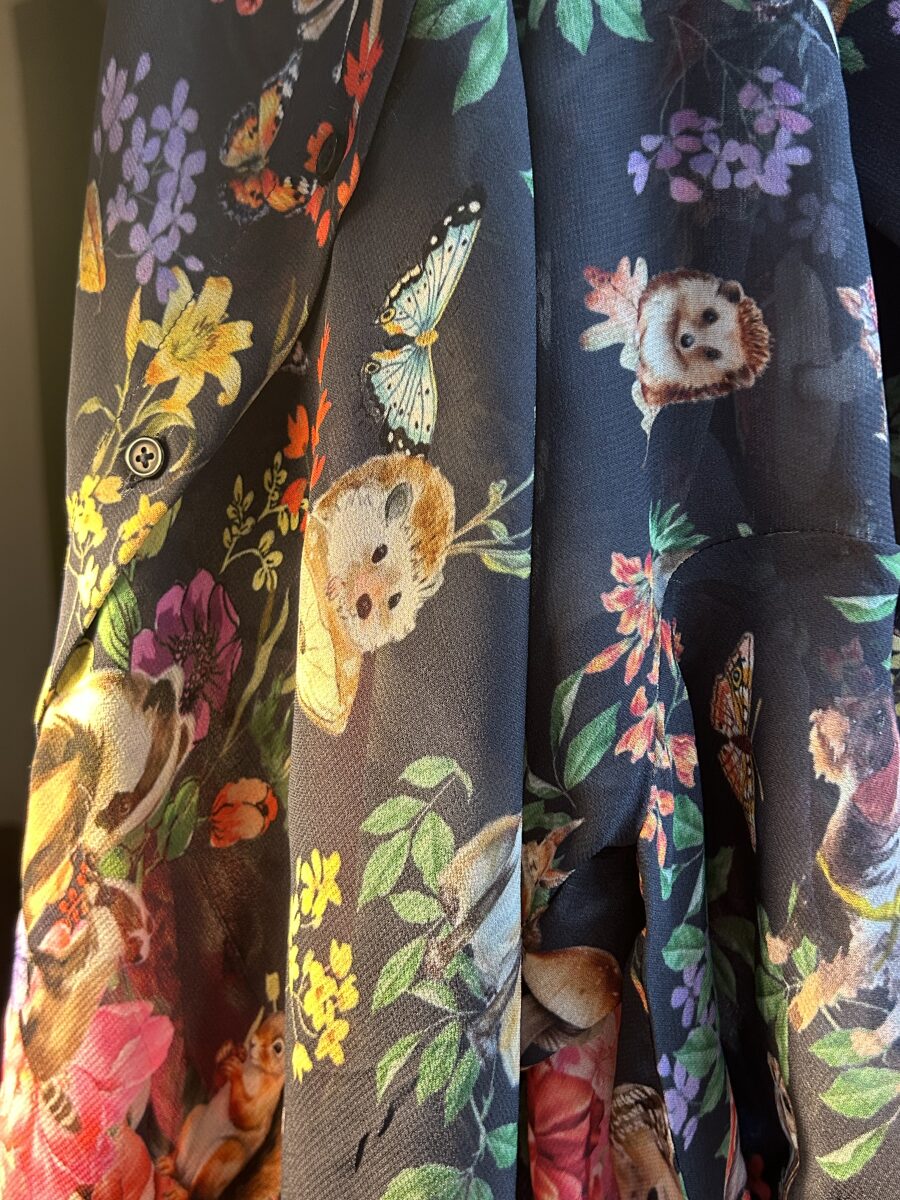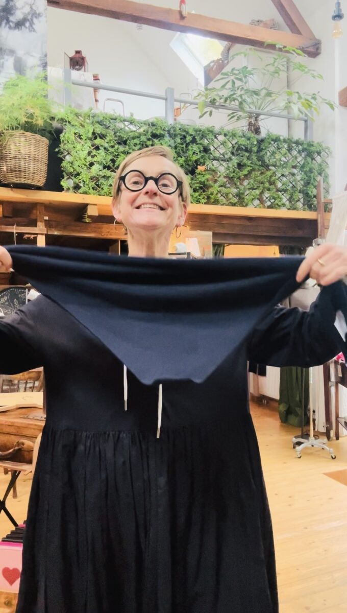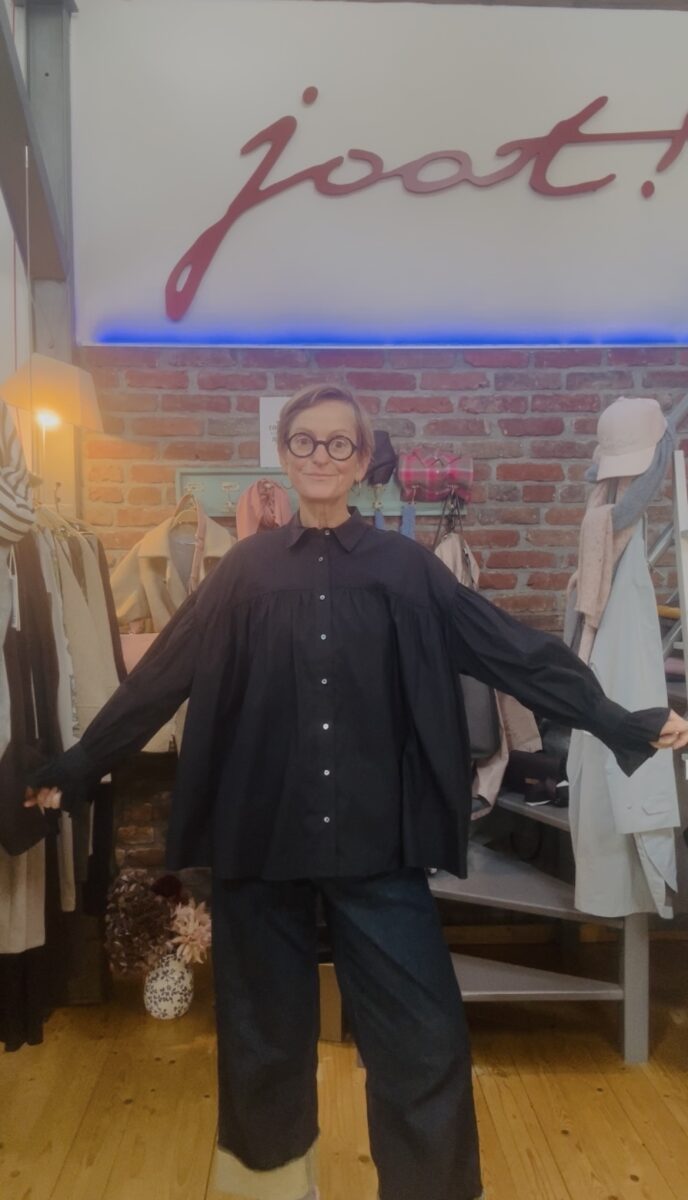 In der schwarzen Bluse, die ich hier trage, ist zwar viel Stoff verarbeitet,