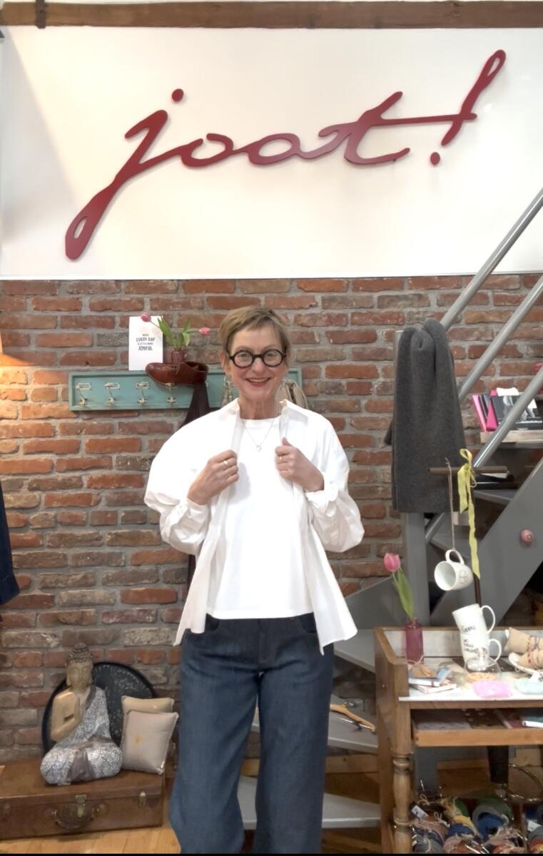 Der ist dann wiederum so nett und hat seitliche Schlitze damit er auch zeigen kann, was er drunter hat! Diese chice Bluse nämlich, die auch unten schön rausschaut und ihre zarte Farbe "lilac" zum Vorschein kommt. Einen Kragen hat sie nicht, was sie das ganze dann auch noch cleaner aussehen lässt. Kombiniert mit meiner bollerigen Jeans sehen Sie mir an, wie ich mich fühle - pudelwohl !!!! - Und genau so gehe ich jetzt mit meiner chicen Bluse in die Mittagspause und etwas spazieren - Ganz wunderbar!