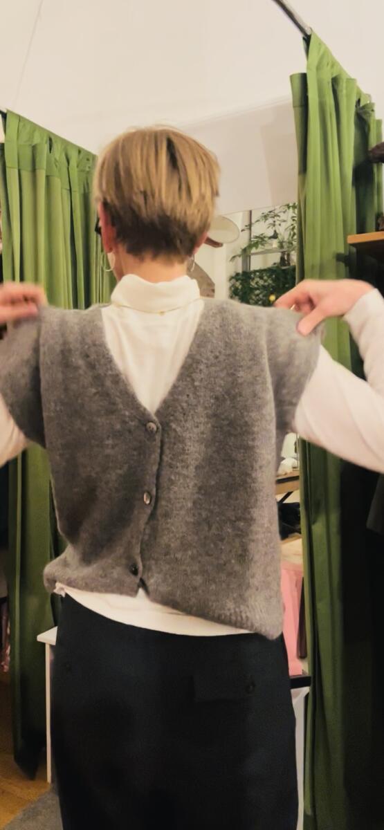Dieses schöne Strickteil zum Beispiel, wurde mir als ärmellose Strickjacke verkauft.